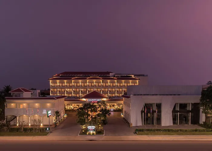 Tempel von Preah Ang Chek und Preah Ang Chorm befindet sich ungefähr 25 Fußminuten von dem 5-Sterne-Courtyard By Marriott Siem Reap Resort entfernt und ist unbedingt einen Besuch wert. Das Hotel liegt am Marktplatz und bietet einen Swimmingpool sowie 233 Zimmer mit Blick auf den Pool.